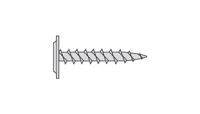 Montasjeskrue med skarp spiss for innfestning i tre og tynne stålprofiler.