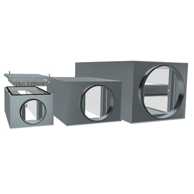 KVDPX er en rektangulær lydfelle med sirkulære tilkoblinger. Lydfellen kan leveres med to forskjellige versjoner av Acutec® dempemateriale som også tåler rengjøring. I tillegg kan KVDPX som et tilvalg leveres med luke slik at dempematerialet kan erstattes.