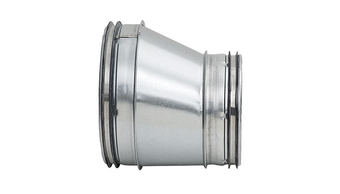 Langt, eksentrisk, håndlaget overgangsrør med ca. 35 ° vinkel.