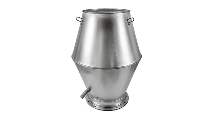Hetten er laget i galvanisert stål, og kan, på bestilling, også leveres i andre materialer som rustfritt stål, aluzink og malt i forskjellige farger. Den har et nett over åpningen, og en intern regntrakt for å samle regnvann og snø, som blir tappet ut av hetten gjennom en slange. Slangen tåler temperaturer på mellom -45 og +65 °C.